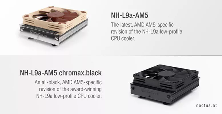 Тези охладители не са 100% нови, но новите издания на изпитаната и надеждна нископрофилна серия NH-L9 са необходими поради промяната на монтажния дизайн на AMD AM5. Оригиналните охладители NH-L9a за AM3 и AM4 просто бяха твърде различни, за да бъдат монтирани на платформата AM5 с надстройка на монтажния комплект и за щастие AMD гарантира, че ще се придържа към AM5 поне до 2025 г. По същия начин Noctua трябваше да предостави нови SKU охладители NH-L9i за LGA1700 сокет платформи на Intel през ноември 2021 г.