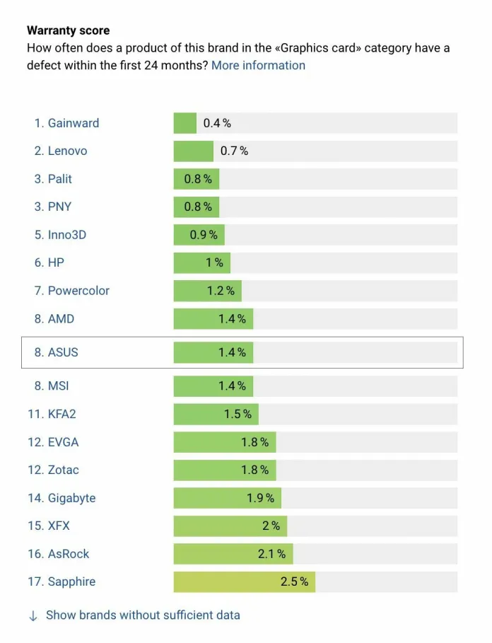 Търсейки отговорниците за най-високите проценти на брак и недостатъци при видеокартите, швейцарската аналитична агенция разглежда компаниите производители. Швейцарският търговец на дребно Dіgіtес Gаlахuѕ АG публикува класация на производителиte, оценени според броя на дефектите в техните продукти и времето, което те отделят за отстраняване на проблема.