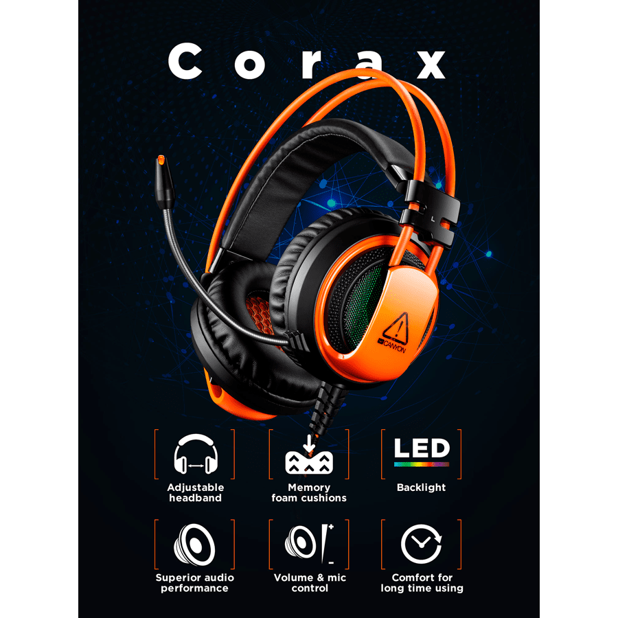 CANYON headset Corax GH-5A USB LED Black Orange