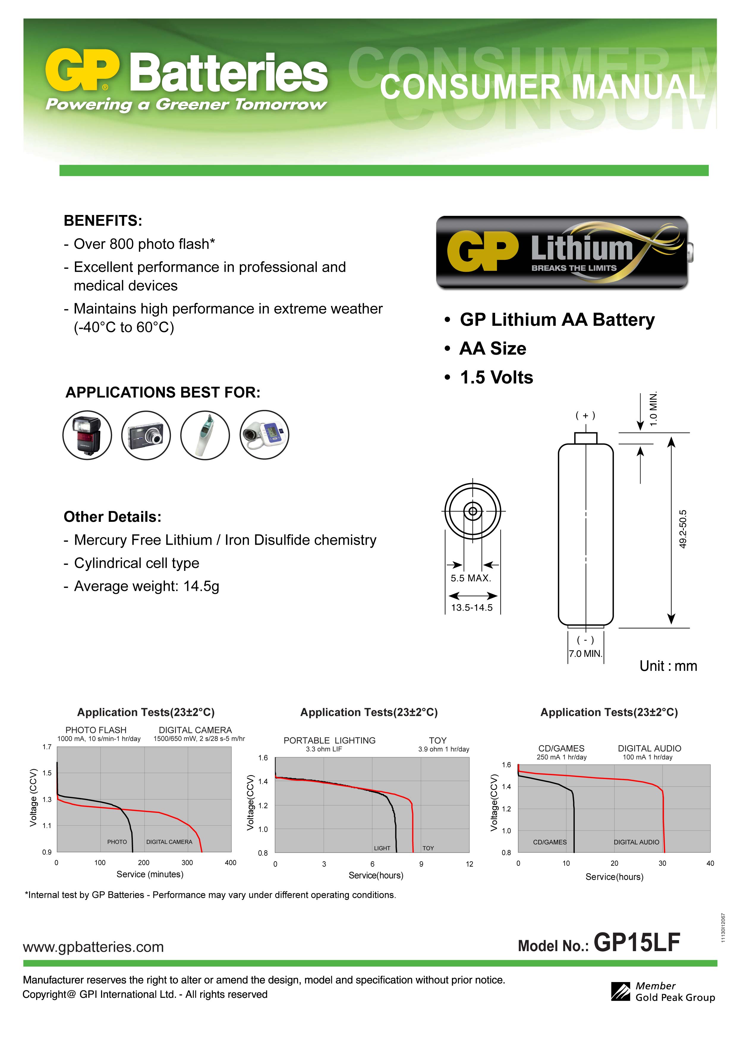 Литиева батерия GP CR6 AA 1,5V 2бр. в блистер Арт.№: 17515 1 от 3 Неналичен Неналичен Доставка и плащане Продуктът вече е разпродаден, оставете Вашата ел. поща, за да Ви уведомим щом го получим отново или да Ви предложим негов заместител. Ел. поща Прочетох „Политиката за поверителност“ и съм съгласен. Уведоми ме при наличност! Добави в любими Твоите любими продукти Сравни Характеристики Батерии Литиева батерия GP CR6 AA 1,5V 2бр. в блистер Документи Документи за сваляне jpeg Литиева батерия GP CR6 AA 1,5V 2бр. в блистер 572 KB | jpeg pdf Литиева батерия GP CR6 AA 1,5V 2бр. в блистер 220 KB | pdf