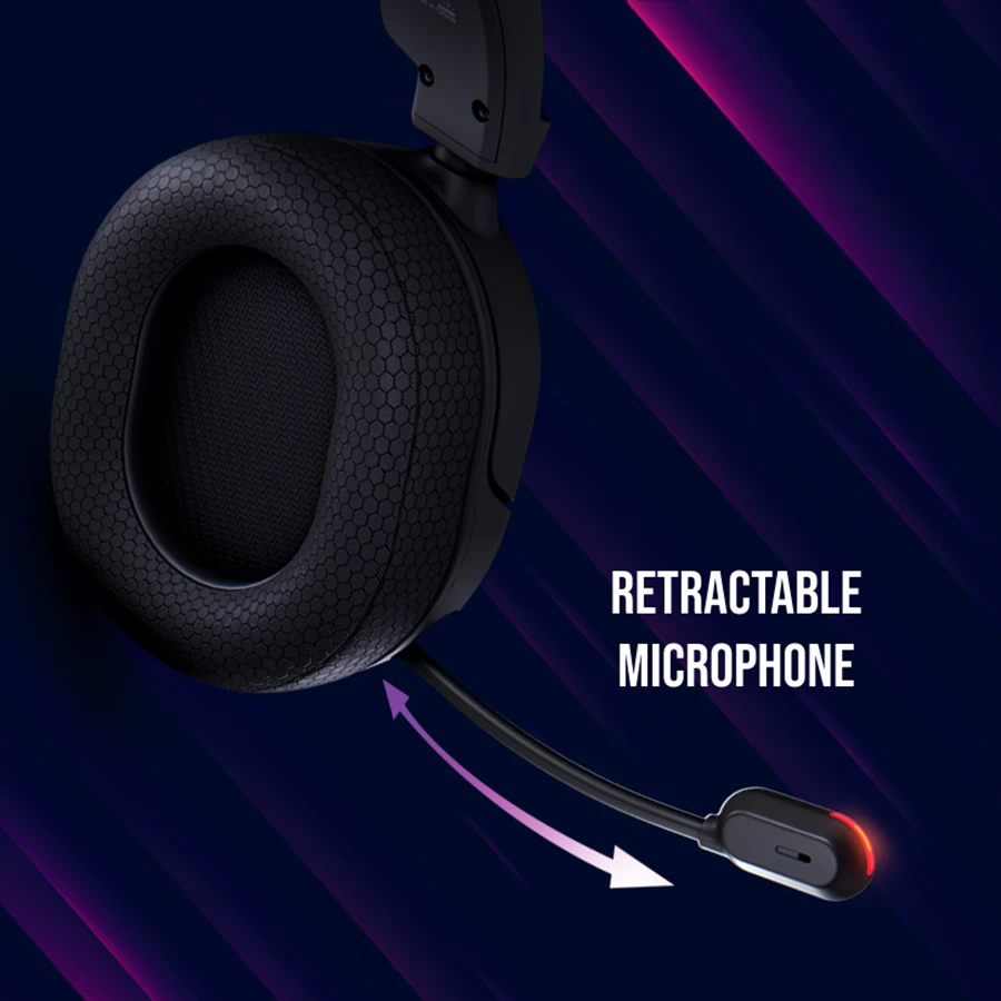 Immerse yourself in the battle with rich sound from the 40mm speakers. The noise-cancelling microphone here allows for clear communication with teammates and features a built-in LED light to indicate when you're speaking. And for times when you don't need to talk, simply retract the microphone into the earcup for a minimalistic look.