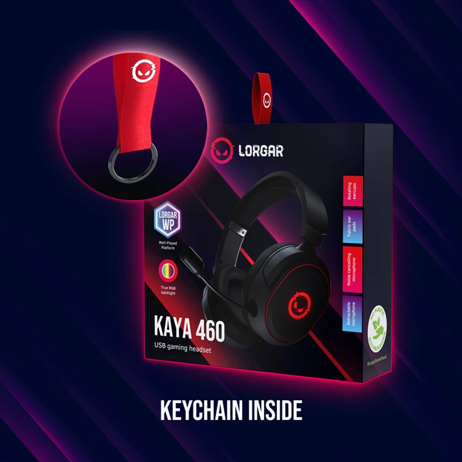 LORGAR Kaya 460, USB Gaming headset with microphone, CM108B, RGB backlight, Plug&Play, USB-A connection cable 2m, fabric ear pads, size: 192*184.7*88mm, 0.329kg, black