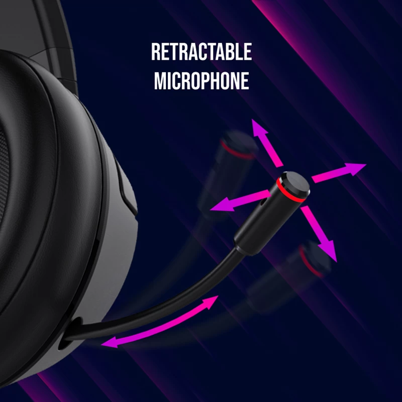 The Lorgar Noah 500 headphones have got excellent 40mm speakers that blast out crisp and clear sound. The mic is retractable and can be adjusted to fit your face, and when you're done talking, just stash it away in the headset. On top of that, the headset itself is also foldable for secure carry in a bag or backpack.
