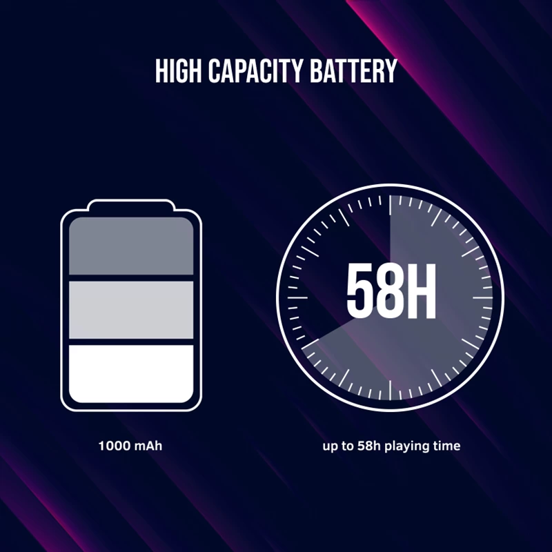 The Noah 500 are also comfy, with soft cushions that keep your ears from getting sore, even during marathon gaming sessions. Plus, they're adjustable to fit all head sizes. The Noah series is perfect for gaming, with low latency that makes sure your game runs smoothly on any platform - phone, PC, or console. And with a huge 1000mA battery, you'll get up to 58 hours of Bluetooth connectivity. Just in case, there’s an option for wired connection.