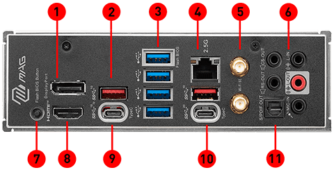 Onboard Graphics | 1x HDMI™ Support HDMI™ 2.1 FRL, maximum resolution of 4K 120Hz* 1x DisplayPort Support DP 1.4, maximum resolution of 4K 60Hz* 1x Type-C DisplayPort Supports DisplayPort 1.4 with HBR3, maximum resolution of 4K 120Hz *Available only on processors featuring integrated graphics. Graphics specifications may vary depending on the CPU installed. |