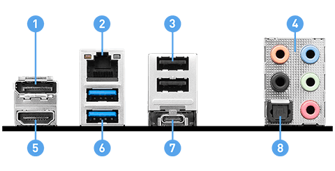 Onboard Graphics | 1x HDMI™ Support HDMI™ 2.1, maximum resolution of 4K 60Hz* 1x DisplayPort Support DP 1.4, maximum resolution of 4K 60Hz* *Available only on processors featuring integrated graphics. Graphics specifications may vary depending on the CPU installed. |
