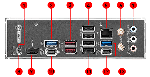 USB | 4x USB 2.0 (Rear) 4x USB 2.0 (Front) 2x USB 5Gbps Type A (Rear) 2x USB 5Gbps Type A (Front) 2x USB 10Gbps Type A (Rear) 1x USB 10Gbps Type C (Front) 1x USB 20Gbps Type C (Rear) 1x USB 40Gbps Type C (Rear) |